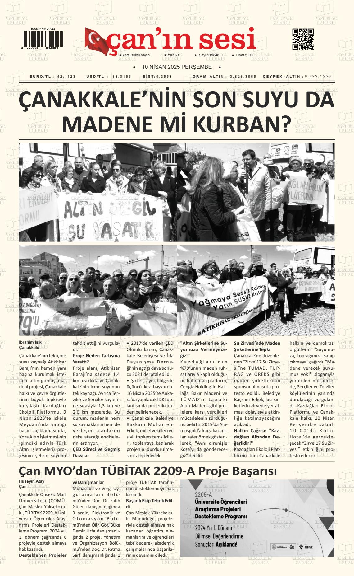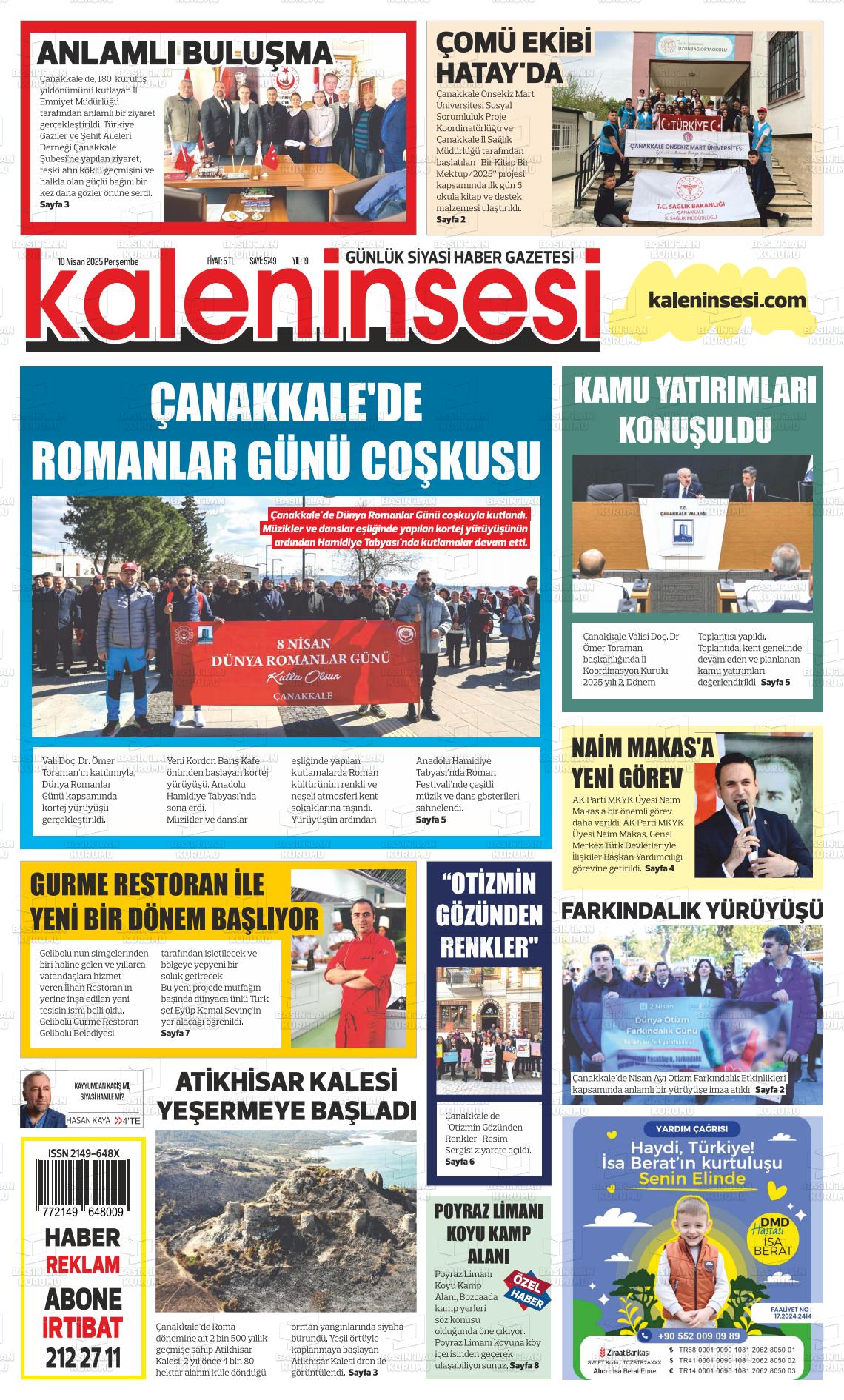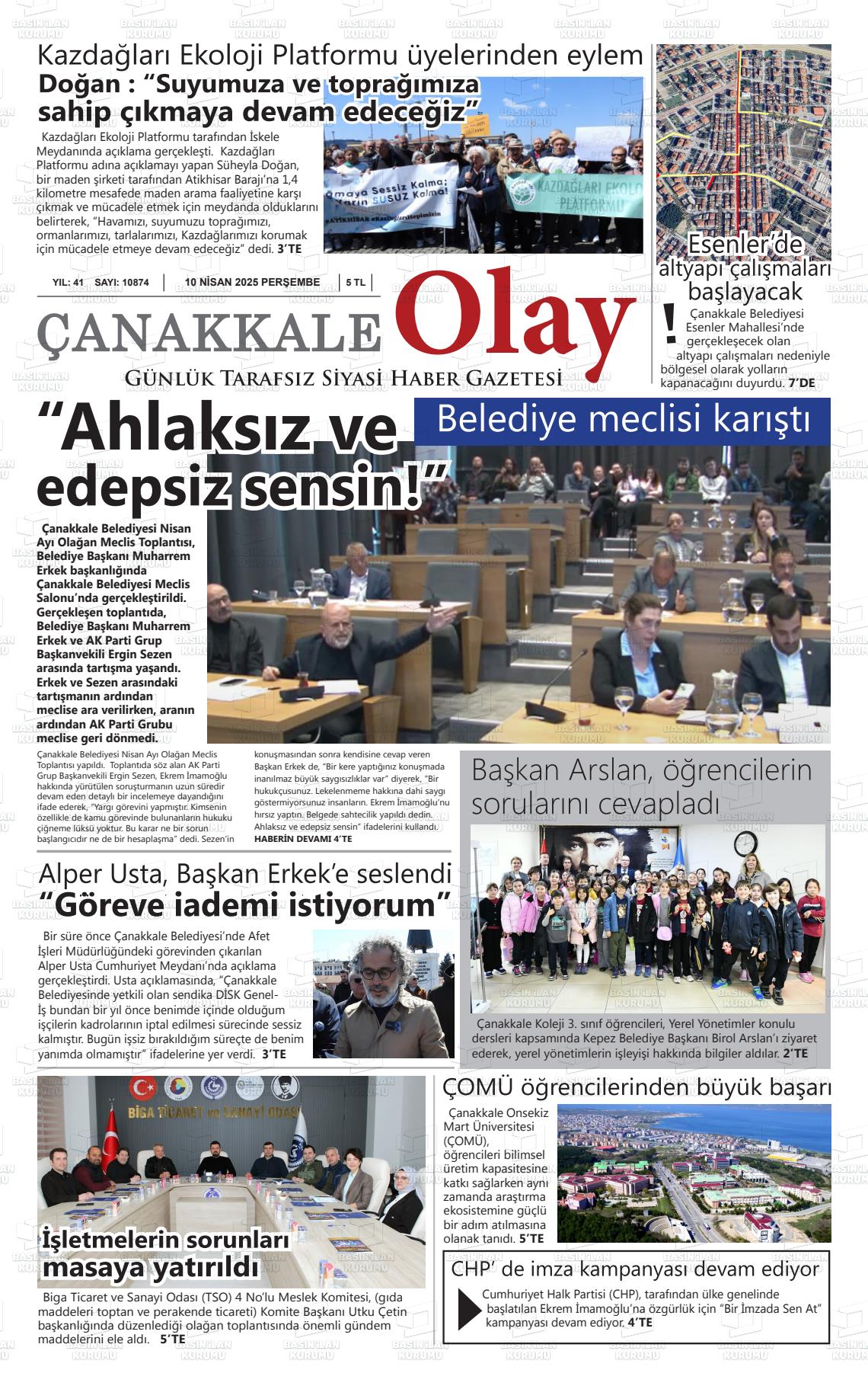 Çanakkale Yerel Gazeteleri 30 Ocak 2026, Cuma Günü Manşeti