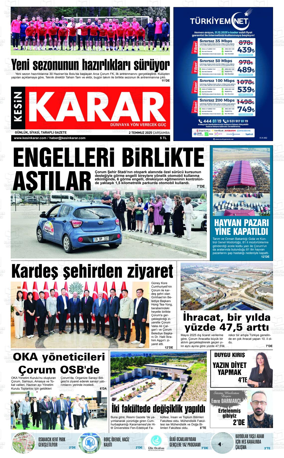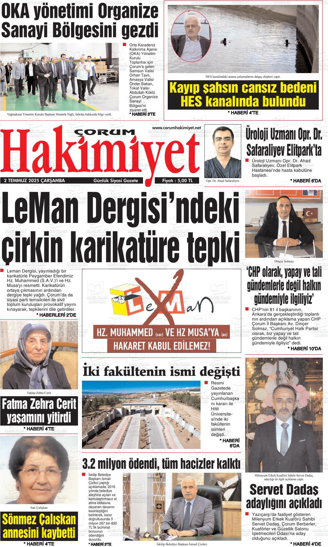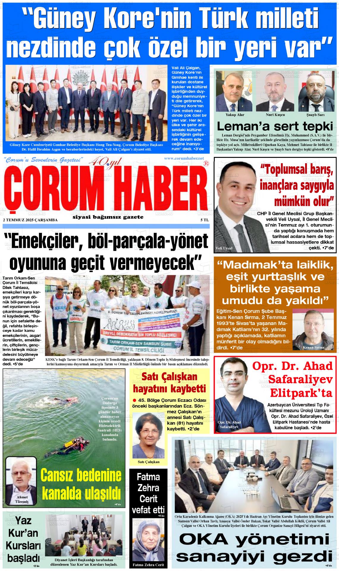 Çorum Yerel Gazeteleri 30 Ocak 2026, Cuma Günü Manşeti