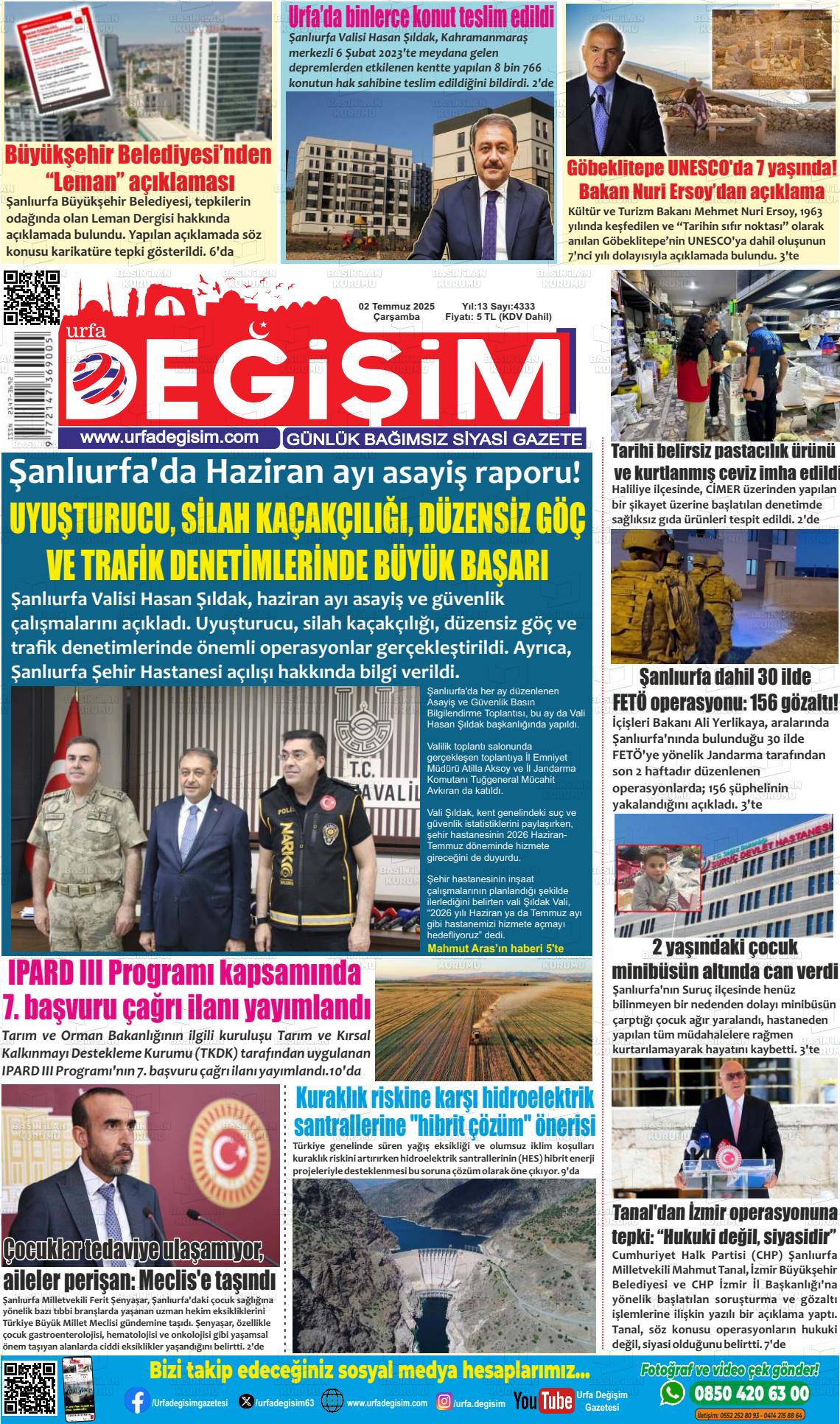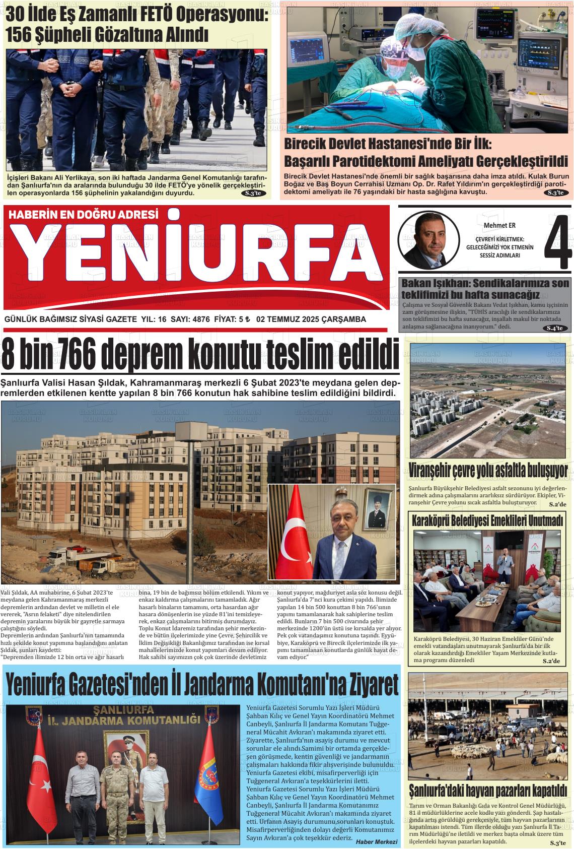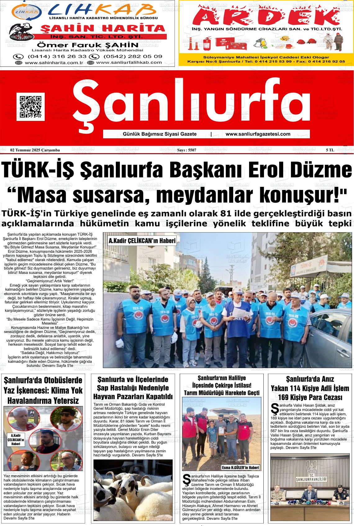 Şanlıurfa Yerel Gazeteleri 30 Ocak 2026, Cuma Günü Manşeti