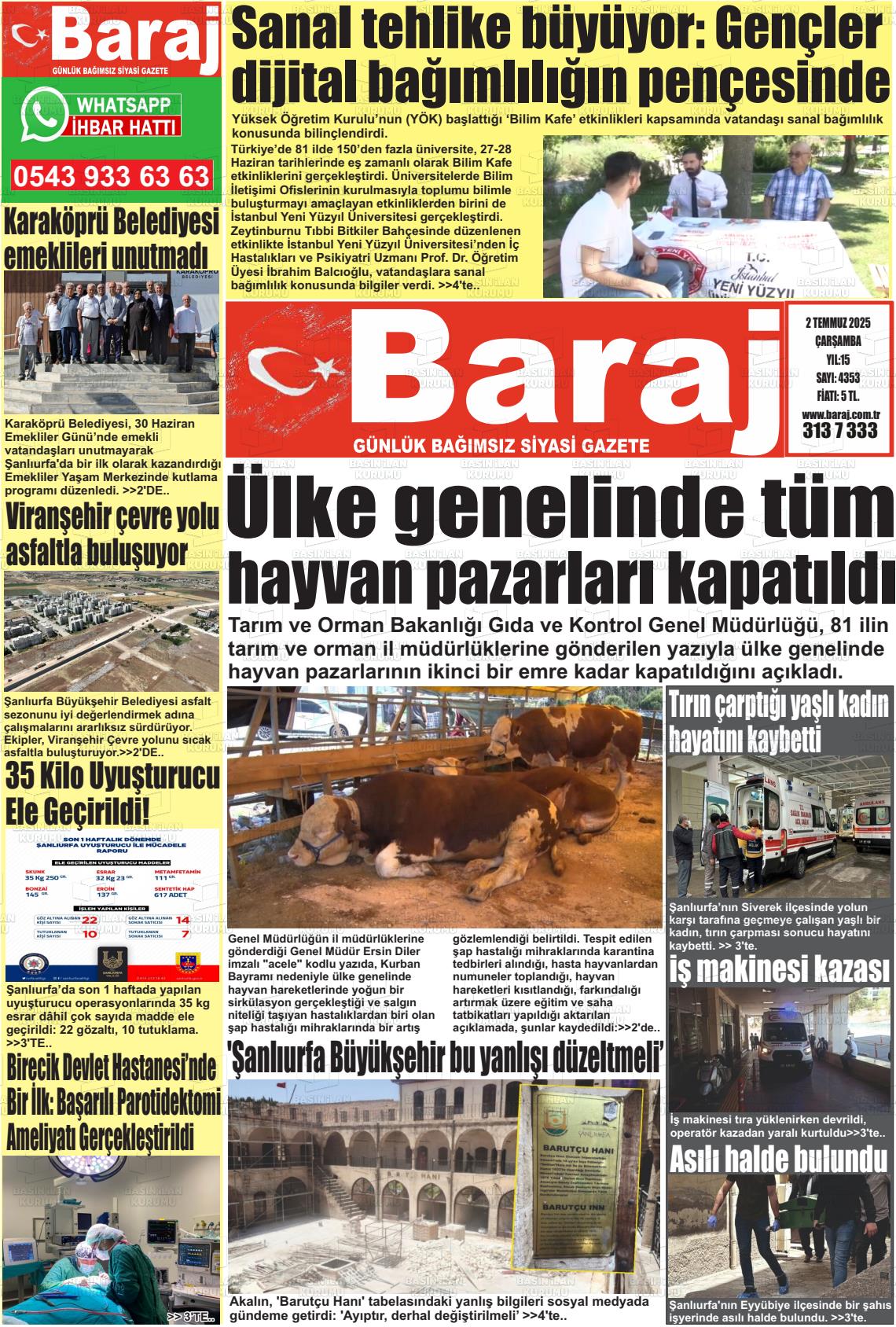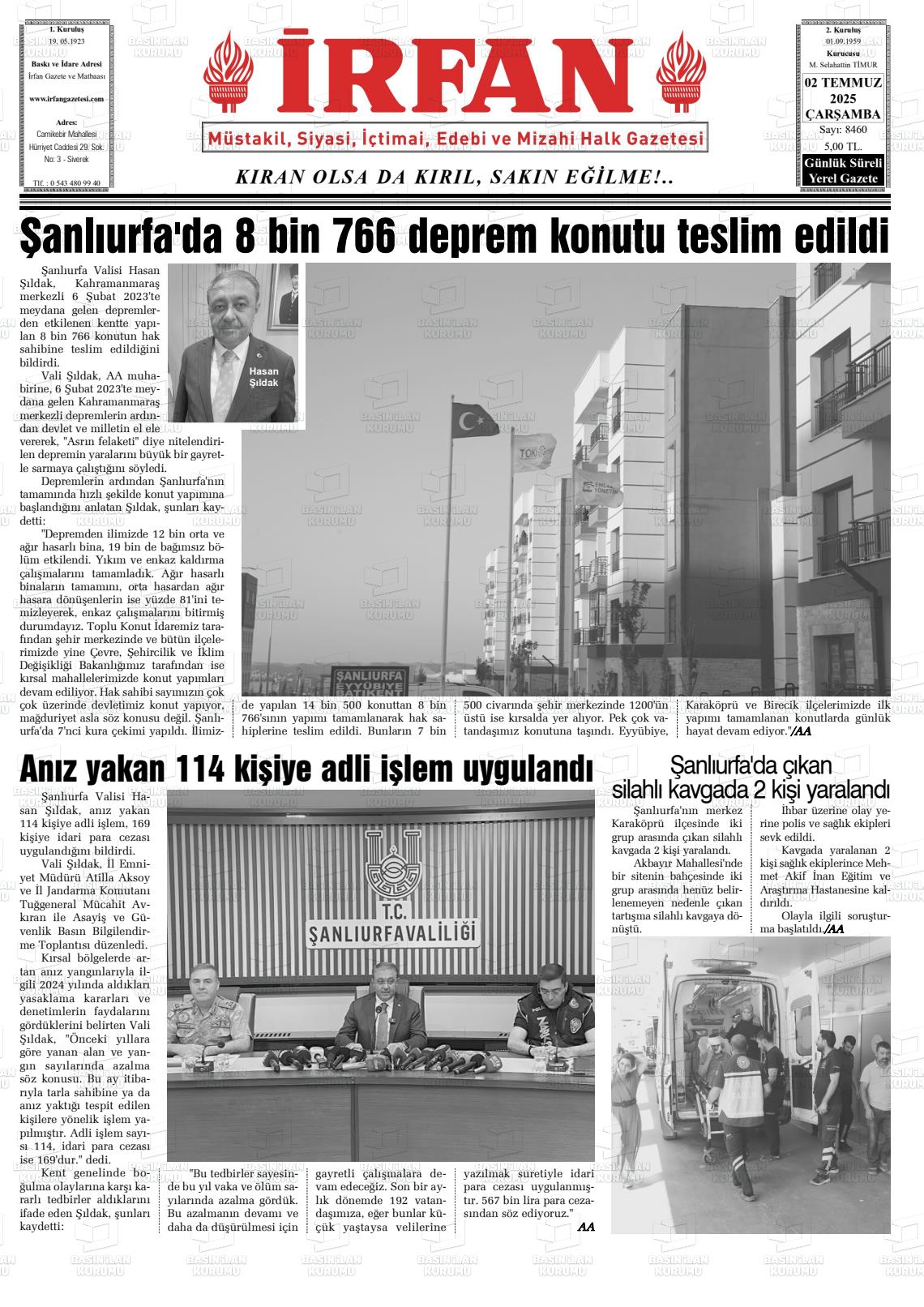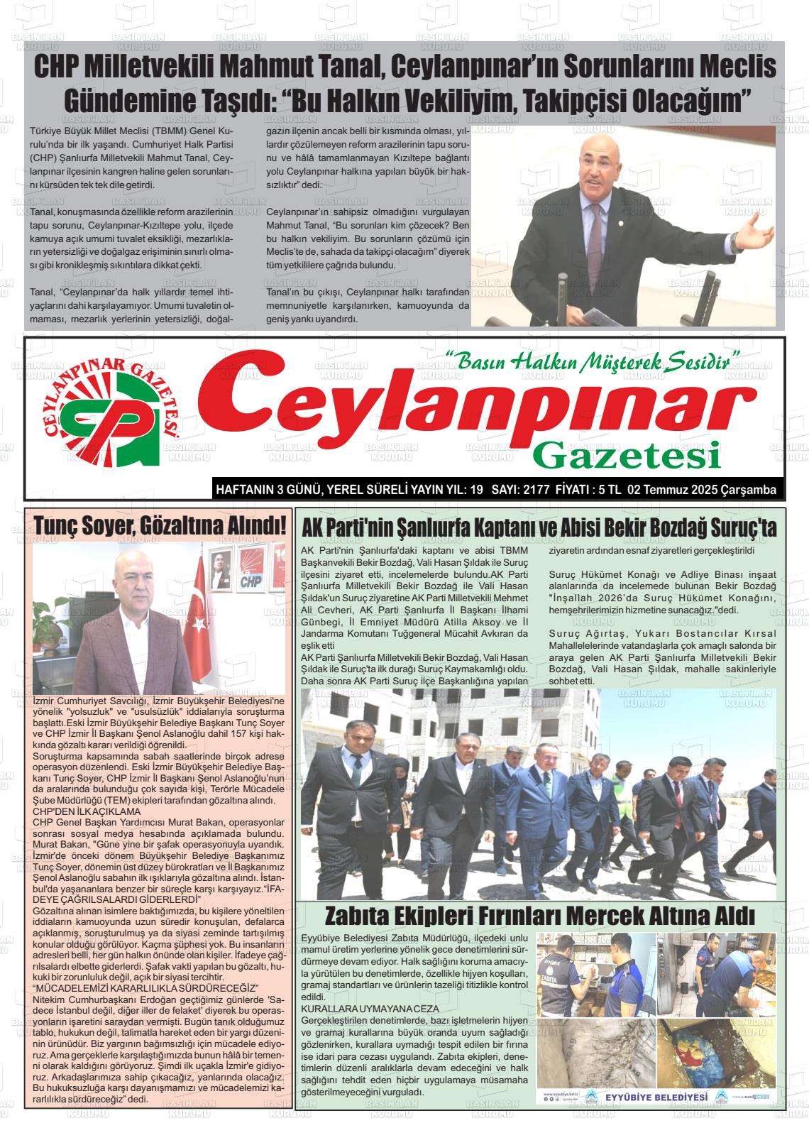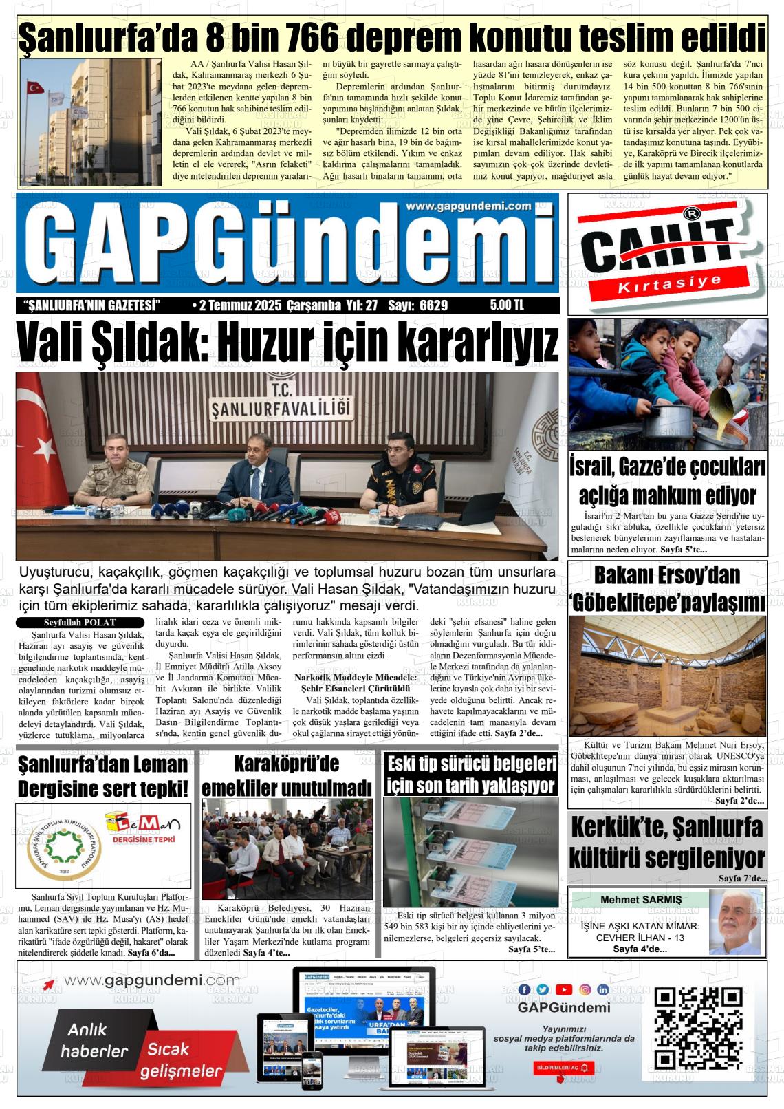 Şanlıurfa Yerel Gazeteleri 30 Ocak 2026, Cuma Günü Manşeti