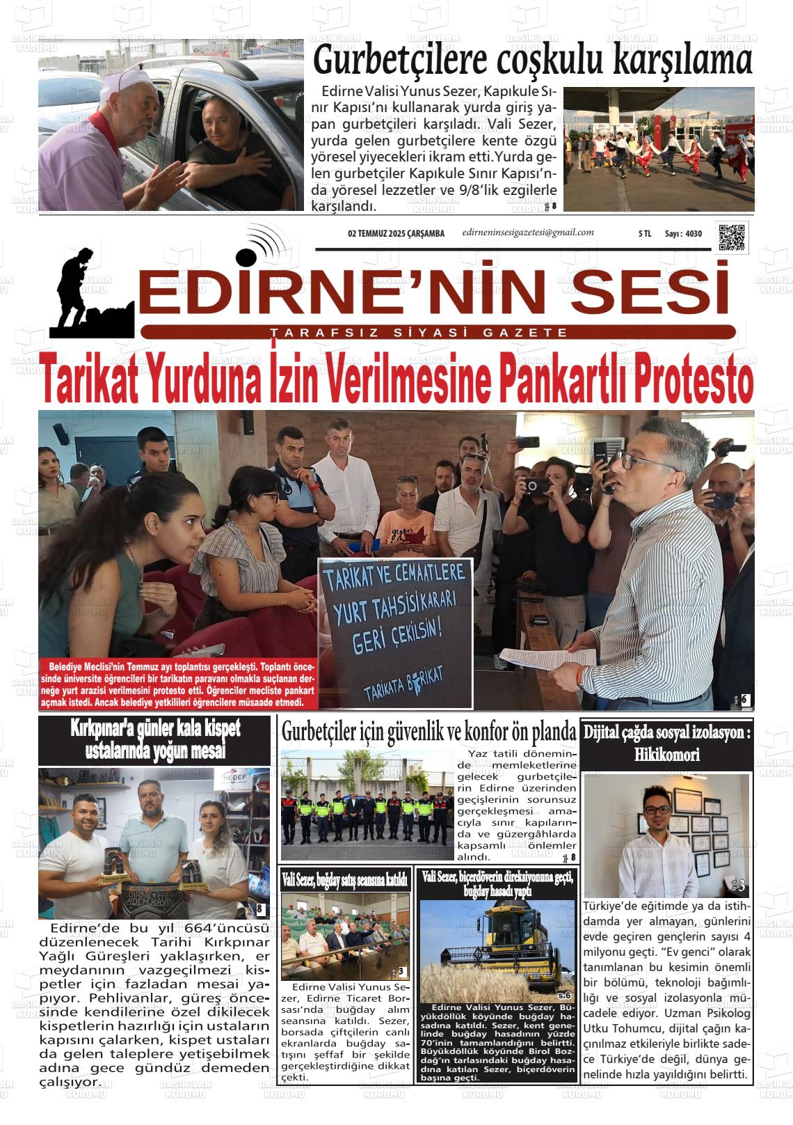 Edİrne Yerel Gazeteleri 30 Ocak 2026, Cuma Günü Manşeti