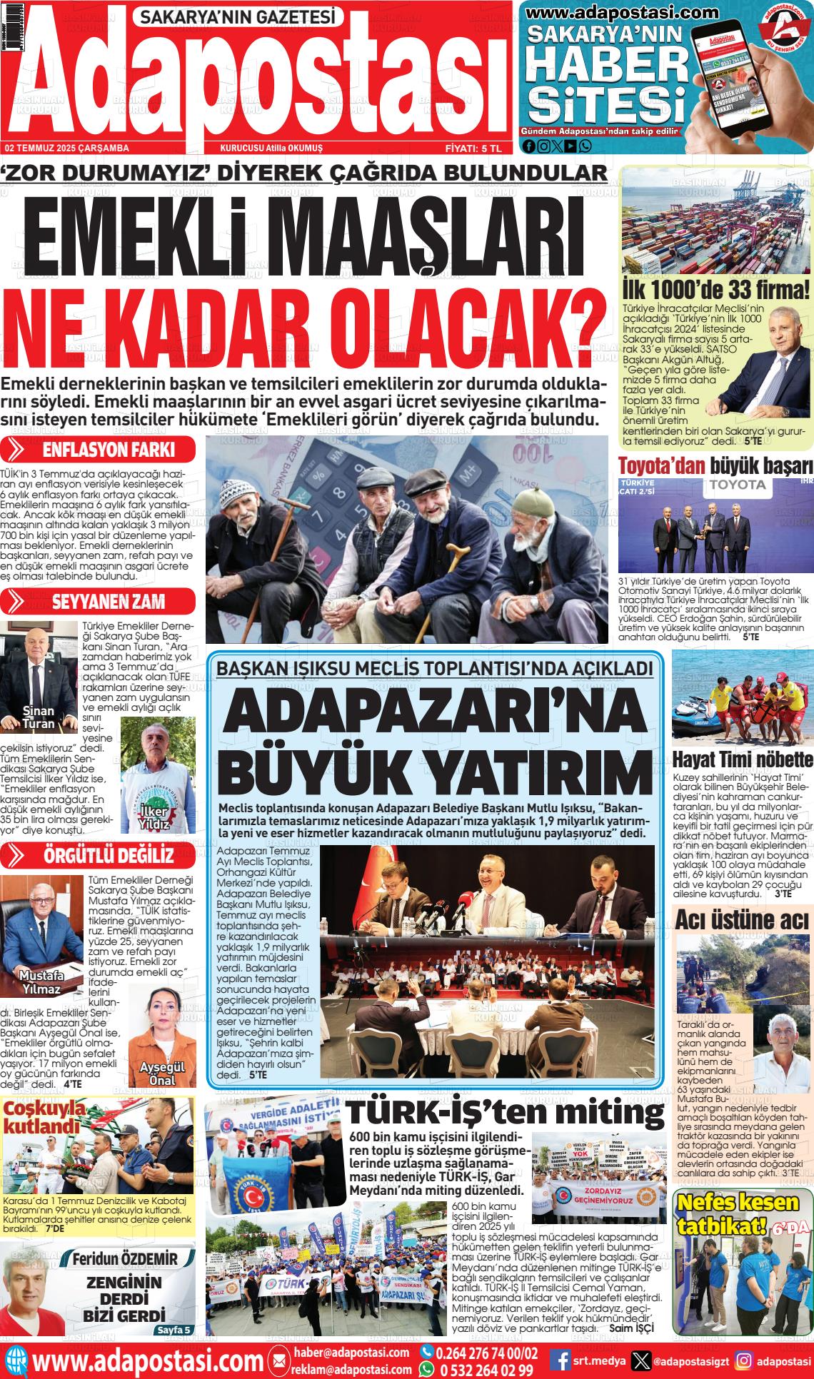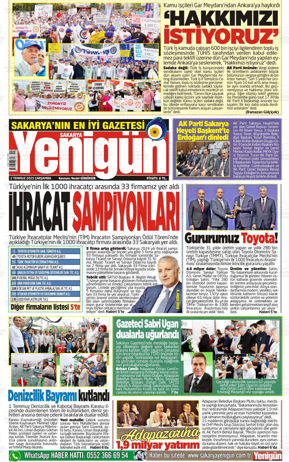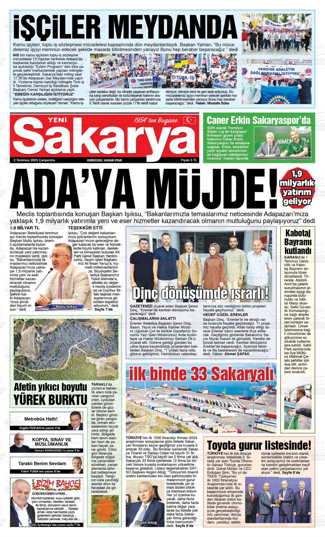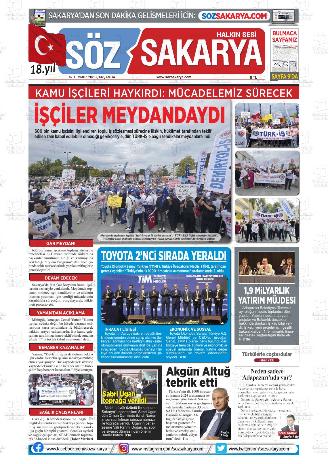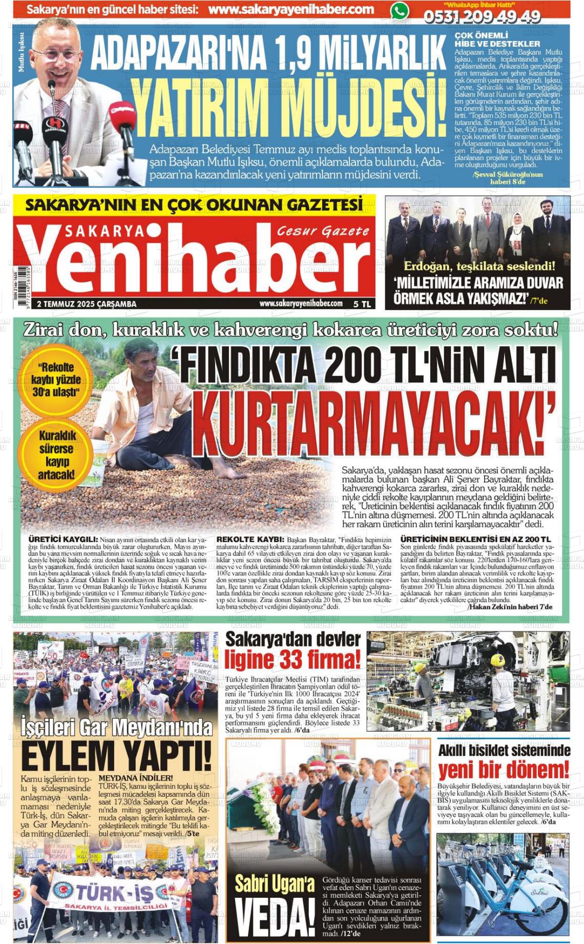 Sakarya Yerel Gazeteleri 30 Ocak 2026, Cuma Günü Manşeti
